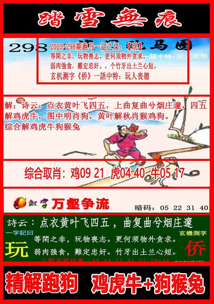 | 五行肖 | 五行生肖属性:【金肖】猴鸡 【木肖】虎兔 【水肖】鼠猪 【火肖】蛇马 【土肖】牛羊龙狗 | |||